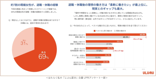 株式会社うるるは、「女性の『就労と時間配分』実態調査」に基づくプロジェクト『はたらく私の「じぶん配分」白書』を公開しました。対象は過去5年以内に休職・離職を経験した20~50代の既婚女性1,000名。これにより、多くの女性が人生の節目に直面しながらも働き続けるための葛藤や工夫を浮き彫りにしています。