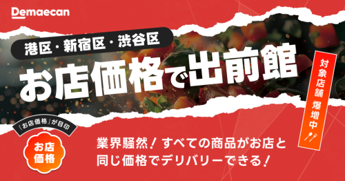 デリバリーサービス「出前館」を運営する株式会社出前館は、店頭と同じ価格で商品を注文できる取り組み「お店価格で出前館」の提供エリアを拡大し、東京都内の港区・新宿区・渋谷区で新たにトライアルを開始します。期間は2025年11月1日〜2026年1月31日で、対象エリアでは約760店舗が参加します。