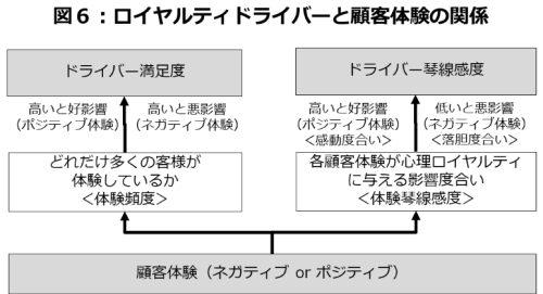 これらの「体験頻度」と「体験琴線感度」を測定・分析することで、企業は「増やすべき感動体験」と「絶対に避けるべき落胆体験」を具体的に特定でき、より効果的な施策を立案するための基盤を築くことができます。なお、「体験頻度」は主に「ドライバー満足度」への影響度が高く、「体験琴線感度」は「ドライバー琴線感度」への影響度が高くなります(図6)。
