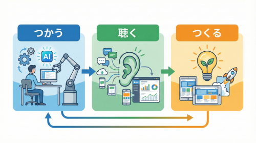 東京都のAI戦略は、AIをめぐる活動を「つかう」「聴く」「つくる」という3つの「力」に分類し、それぞれの強化を目指しています。この考え方は、DX推進に取り組む中小企業にとっても非常に有効です。
