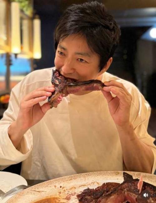 大きな肉に豪快にかぶりつくプライベートショットを公開し、ファンから「ワイルドでかっこいい」「無邪気な笑顔がたまらない」と反響が集まっている。