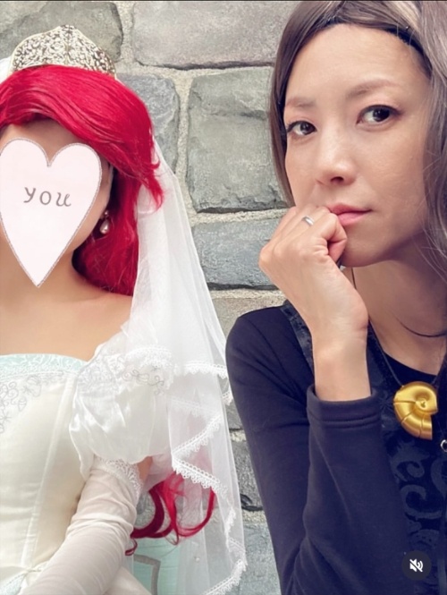 投稿では「娘とディズニーハロウィン行ってきました。娘はウェディングアリエルで、私は悪役のヴァネッサ」とコメントし、親子での仮装姿を披露した。
