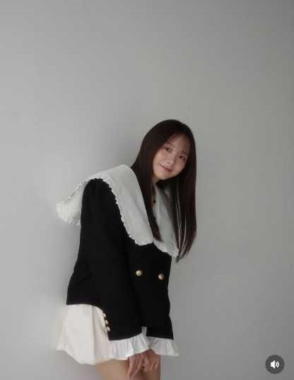 写真では、白いフリルスカートに黒のジャケットを羽織り、柔らかい笑顔を浮かべてポーズを取る森の姿が映し出されている。ジャケットの襟元には大きめのレースがあしらわれ、クラシカルで清楚な印象に。落ち着いたモノトーンコーデながら、ミニ丈からのぞく美脚がアクセントとなり、上品さと可憐さを兼ね備えたスタイルとなっている。