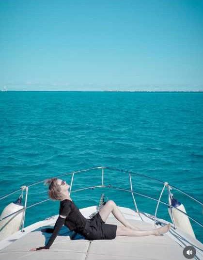 添付された写真には、碧く広がる海を背景に、クルーザーの船首で身体を預けるように横たわるMattの姿が写されている。黒のコーディネートに身を包み、顔を空に向けて目を閉じる姿は、日常から解き放たれた開放感に満ちた一枚だ。果てしなく続く水平線と澄んだ空が、非日常の時間を象徴している。