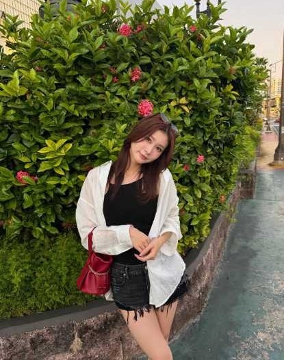 黒のトップスにショート丈のボトムス、さらりと羽織った白のシャツというラフな装いながら、全体から漂う空気感は洗練そのもの。