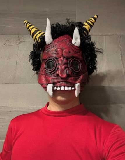 鋭い角と迫力のある表情が印象的な鬼のお面はリアルさ満点で、大人でも思わず身構えてしまいそうな仕上がりだ。