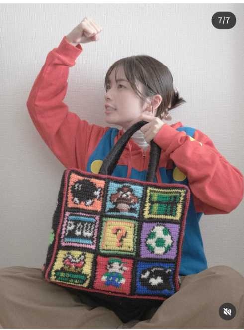 小芝は投稿文で「スーパーマリオのバッグ。初めてドット編みに挑戦しました。結構時間かかったなぁ。でも想像よりいい感じにできて大満足です。今までで1番の大作だぁ」と振り返り、達成感あふれる思いをつづっている。細かなドットで表現されたマリオのデザインは完成度が高く、初挑戦とは思えない仕上がりだ。