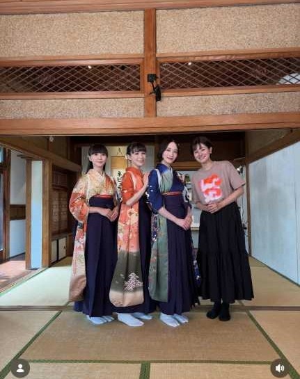 投稿された写真では、和装姿のPerfumeメンバー3人と徳島アナが並んで笑顔を見せている。あ~ちゃん、かしゆか、のっちは華やかな着物と袴姿で凛とした佇まいを見せ、徳島アナも落ち着いた装いで寄り添う。和の空間を背景にした集合ショットは、特別な時間を感じさせる一枚だ。