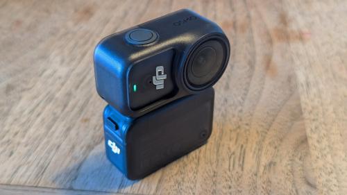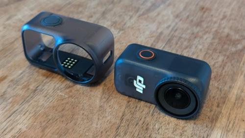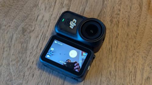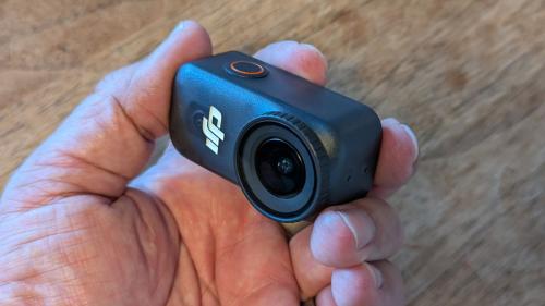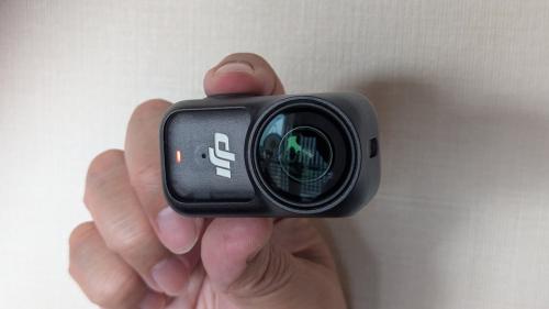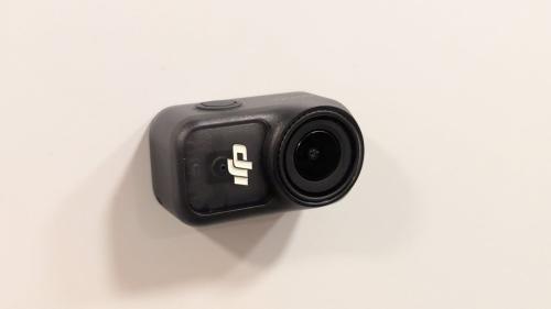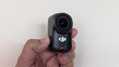 カメラ本体は、DJIのアクションカメラでは最小となる約57×29×28mmのサイズ。筐体は薄いグレーのスケルトンカラーで、ちょっと未来っぽいイメージ。