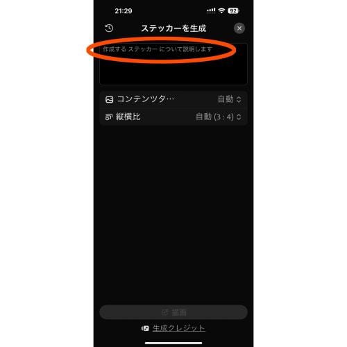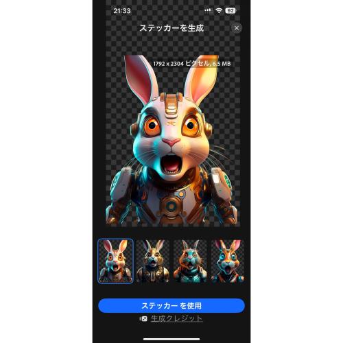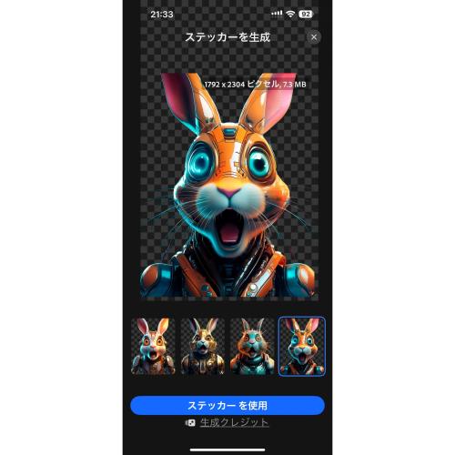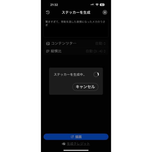 持っているアカウントでログインしてみたら、元の画面に戻ってきた。試しに「ステッカーを生成」を押すと……なんか出てきた!