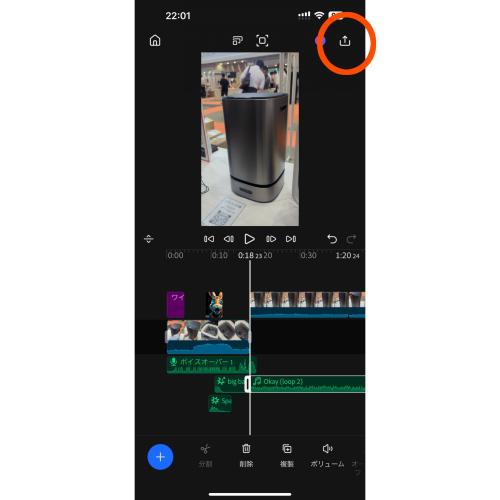 ひとまず、ビデオを書き出ししてみよう。iPhone15 PRO MAXだと体感20秒に満たないくらいで書き出し完了。うーん、これはすごいぞ。
