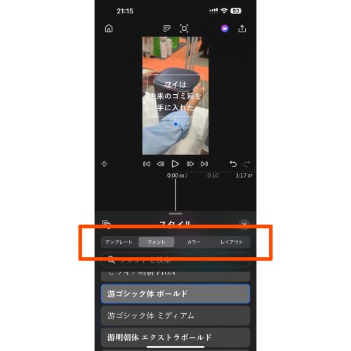 タイトルのクリップを選ぶと、「テキストを編集」「スタイル」とか出てきた。