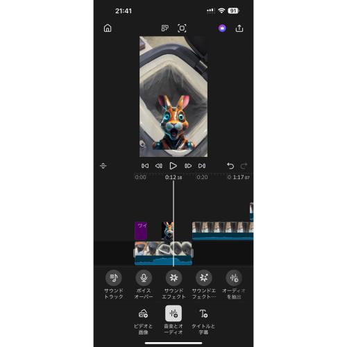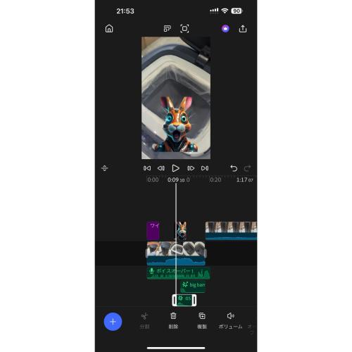 で、大まかにやりたいことを選びつつ、作った要素(動画とかのクリップ)を触ると、細かい編集メニューが出てくるんだな、多分。良いぞ良いぞ。