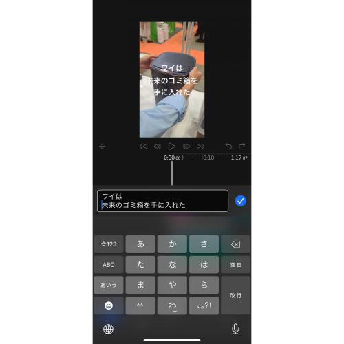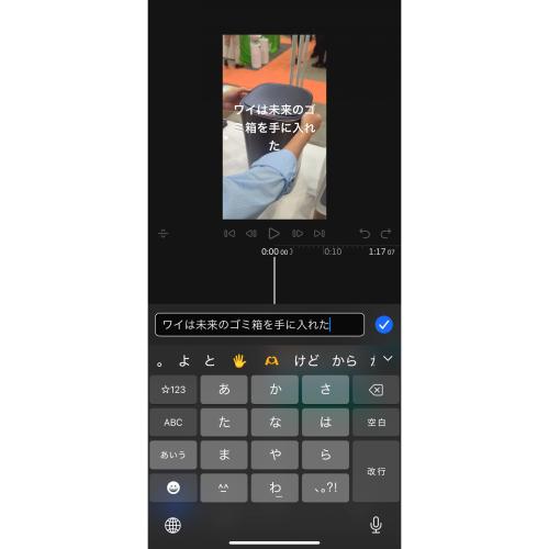 「ワイは未来のゴミ箱を手に入れた」と入力したら、ちゃんと動画クリップの上のレイヤーに新しいクリップが出来た。