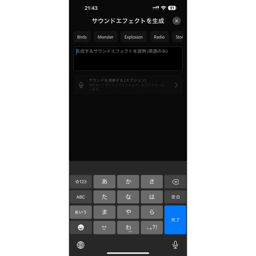 これつまり、さっきの「ステッカーを生成」みたいに、文字列の説明だけでイメージしたサウンドを作ってくれるの?ウソでしょ。やる。
