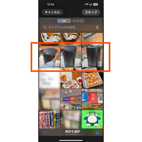 iPhoneの「写真」に、ガジェ通でクラウドファンディングしてる、めっちゃメカな未来のゴミ箱の動画が3ファイルあったので、3つ同時に読み込ませてみました。