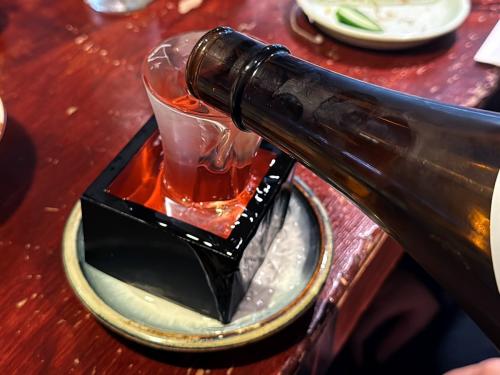 こうなるとパートナーをビールから日本酒に変更不可避。季節のおすすめ地酒として八海山のしぼりたて原酒があったのでそちらを注文しました。注ぎっぷりも大盤振る舞いで嬉しい限り。