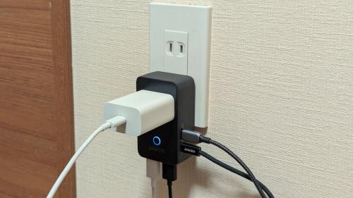 ACの変換プラグとしてだけでなく、4口のUSBポートからデバイスを充電するUSB充電器として使えるのも魅力。