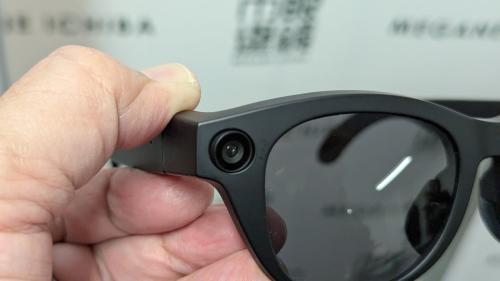 レンズの隣に1200万画素カメラを内蔵。縦方向の写真と動画を撮影でき、動画は1920×1440の解像度と30fpsのフレームレートで撮影できます。テンプルの上にあるシャッターボタン、スマートフォンアプリの撮影ボタン、音声操作の3通りの操作で撮影が可能。撮影した画像や動画はグラス本体からスマホにインポートして利用できます。