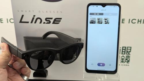 上位モデル「Linse」はカメラを内蔵し、写真や動画の撮影、音楽再生、通話に利用できるスマートグラス。Linseは「Luminous(明瞭で)」「Interactive(双方向な)」「Next-Gen(次世代の)」「Smart(スマート)」「Eyewear(アイウェア)」から名付けた名称で、ガジェットとしてではなく「毎日かけるメガネ」としての普及を目指し、4年かけて開発されたとのこと。