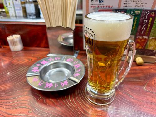 この日はまず500円を置き、生ビールを注文したらちょうど500円だったのでお釣りが戻ってきませんでした。わかりにくい写真になってしまったけど、まあビールがウマいからOK!