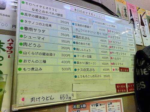 「ひとりあじ」には割と幅広いジャンルのおつまみメニューがあります。いつもそんなに長い時間滞在しないし、食べたことのないものばかりなんだけど、安くて魅力的なものがいっぱい!