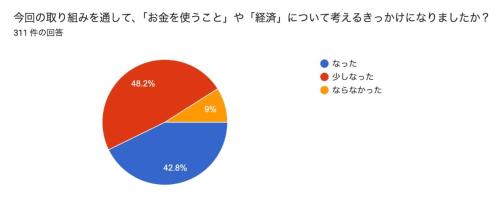この「大人のお年玉」施策、ただ単にお金を使ってハッピー! で終わらないのがすごいところ。「お金を使うことや経済について考えるきっかけになったか?」という質問に対し、なんと回答者の約91%の社員が「なった(42.8%)」「少しなった(48.2%)」と回答しています。
