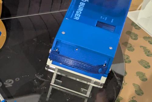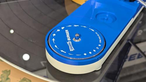 「SHARK BURGER」は、地域に根付いた文化とアナログレコードの魅力を次世代へつなぐプロジェクトとして、宮城県気仙沼の伝統産業である“サメ漁”とコラボしたモデル。サメの要素を随所に盛り込んだ、楽しいデザインに仕上がっています。シャークブルーの本体にはサメのキバが。