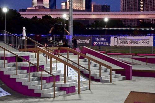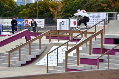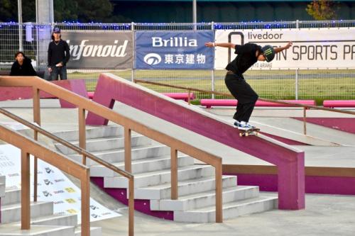 ランでKグラインドからのノーリーフリップアウトを決めたことで他を引き離し、ベストトリックでも1本目に早々と高得点を重ねた織田が今大会を制した。