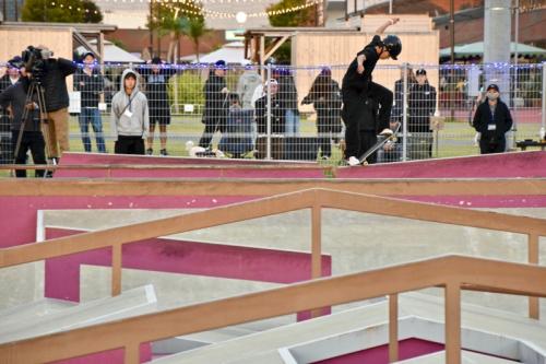 ラストトリックは2本目に見せたキックフリップフロントサイドノーズグラインドより難易度は下がるものの、時間内にしっかり収めて88.52点を獲得し、暫定4位でベストトリックへ進む。