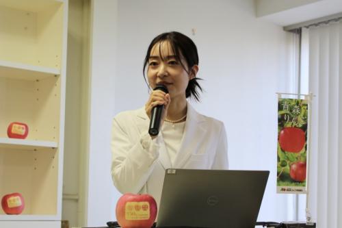 内科医・消化器病専門医の工藤あき氏は、りんごがドクターズフルーツと呼ばれる理由を解説。「りんごには、豊富な栄養素がバランスよく含まれています。理想的なバランスで入っているのがりんごの魅力です」と話す。