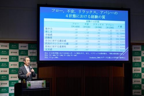 基調講演では、フロー理論研究の第一人者である法政大学の浅川希洋志教授が登壇した。