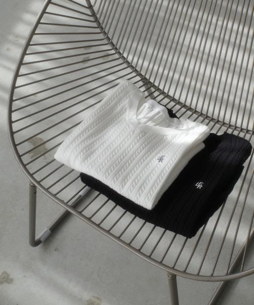 税込22,500円以上の購入で「Vネックロゴ刺繍半袖ケーブルニットトップス」を1点プレゼント。さらに税込45,000円以上の購入者には、同トップス2点、またはルミネ限定カラーのストレッチフレアデニムパンツのいずれかが贈られる。