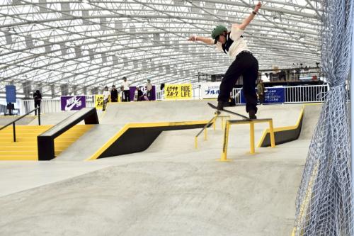 最後の最後に大技のキャバレリアルキックフリップ バックサイドリップスライドを決めきって大会を締めくくった。