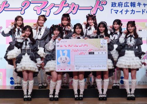 マイナカードを持つことから使うことへの転換と促進のためのキャンペーン。今回が初めての10人全員でのテレビCM出演となった。CMではオリジナル曲を歌唱し、マイナカードでできることを紹介。大場花菜(26)は「マイナカードは人生の必需品。持っていないと困ることがある。便利さを知ってもらいたいと思います」と語った。