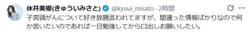 こうした状況を受け、休井は「子宮頸がんについて好き放題言われてますが、間違った情報ばかりなので」と指摘し、「何か言いたいのであれば一旦勉強してから口出しお願いしたい」とくぎをさした。