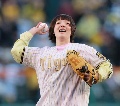 あいみょんは山なりでノーバウンドの投球。超満員の観客から大きな拍手をもらった。地元西宮市の出身で実家は甲子園の歓声が聞こえるほど近い。幼少期から阪神ファンの父に連れられ、何度も足を運んだという。
