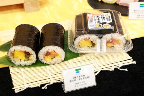 今年のファミマの恵方巻は、監修を受けた2種類の恵方巻きのほか、定番人気の「恵方巻」と「海鮮恵方巻」をおトクに楽しめる2本セットの「2種の恵方巻」が新たに発売。定番恵方巻から、海鮮系、肉系などが取り揃えられ、さまざまなシーンで恵方巻きを楽しめるラインアップとなっている。