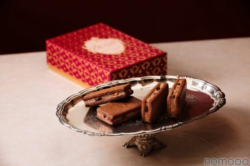 また、デメルといえば定評があるのが美しいパッケージ。クリムゾンレッドの地色に金色の箔が施された「ケックスサンドウィッチ(ショコラーデ)」のパッケージは優美でエレガント。この時季の大切な方へのプレゼントとしても最適です。