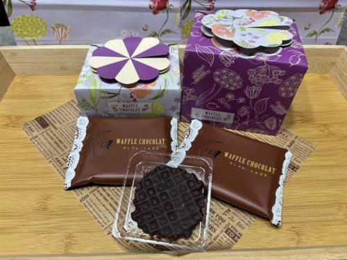職人が丁寧に焼き上げたサクサクした食感のワッフル生地に、口どけの良いスイートチョコレートが贅沢にも両面にコーティングされている。プレゼントボックス型のようなかわいらしいデザインのパッケージも魅力だ。小鳥が描かれた落ち着いた色合いの個包装のため、友チョコや会社などで大人数に配るときにもおすすめな商品となっている。