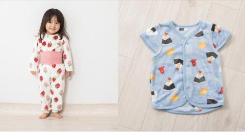 商品名:あったかマイクロフリース 長袖パジャマ イチゴ柄(左)/パジャマベスト おにぎり柄(右)
