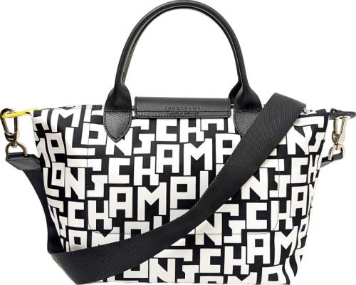 ロンシャンの長年にわたる人気モデル「ル・プリアージュ」のSサイズハンドバッグです。LONGCHAMPの名称を示す文字「LGP」を用い、グラフィカルで建築的な様式のロゴを表現した、ミニマルかつカジュアルな印象のプリントが特徴です。