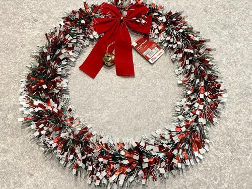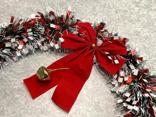 まずご紹介するのが、赤・白・緑のクリスマスカラーが目を引く「モールリース(リボン)」です。