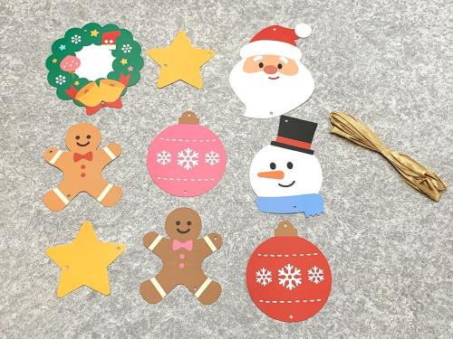 中にはクリスマスリース、星、サンタ、ジンジャーブレッドマン、オーナメント、雪だるまの飾りが入っていました。王道のモチーフかつカラフルな見た目で、子供もワクワクするようなデザインです!