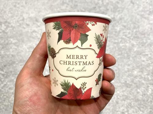 冬の花であるポインセチアがデザインされた「ペーパーカップ」をご紹介します。