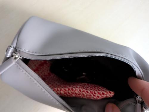 中には仕切りがなく、ポケットティッシュと車のキーを入れてもまだ余裕がありました。