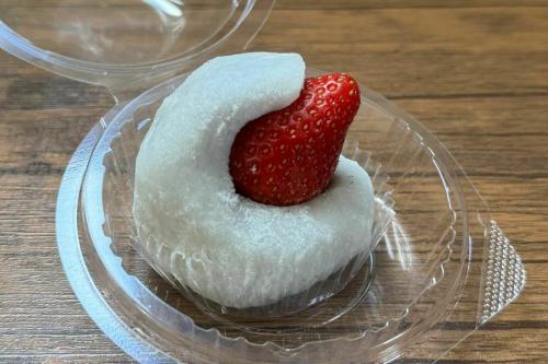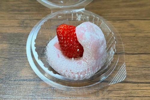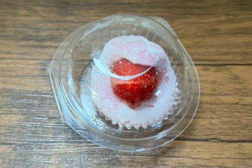 先に紹介した商品の粒あんバージョンです。こちらの商品も仕上げに店舗で苺を飾ることで、鮮度抜群の苺大福に仕立てています。