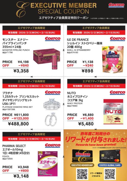 【エグゼクティブ会員向け】2/2~2/15コストコ最新セール・割引情報
