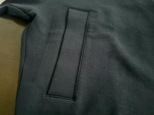 ジャカード編みのようなしっかりとした生地感になっているためでしょうか。サラリとした感触でスウェット素材独特の重さを感じません。