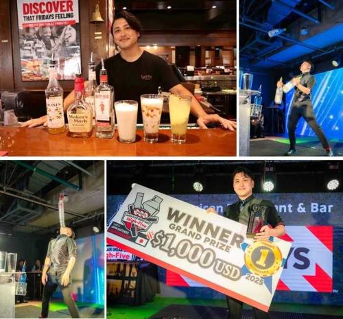 鈴木明広(ELEKI)は、国内外で数々の大会を制した実力派フレアバーテンダー。TGIフライデーズでは、その技術を間近で楽しむことができ、映画館のようなワクワク感を味わえます。